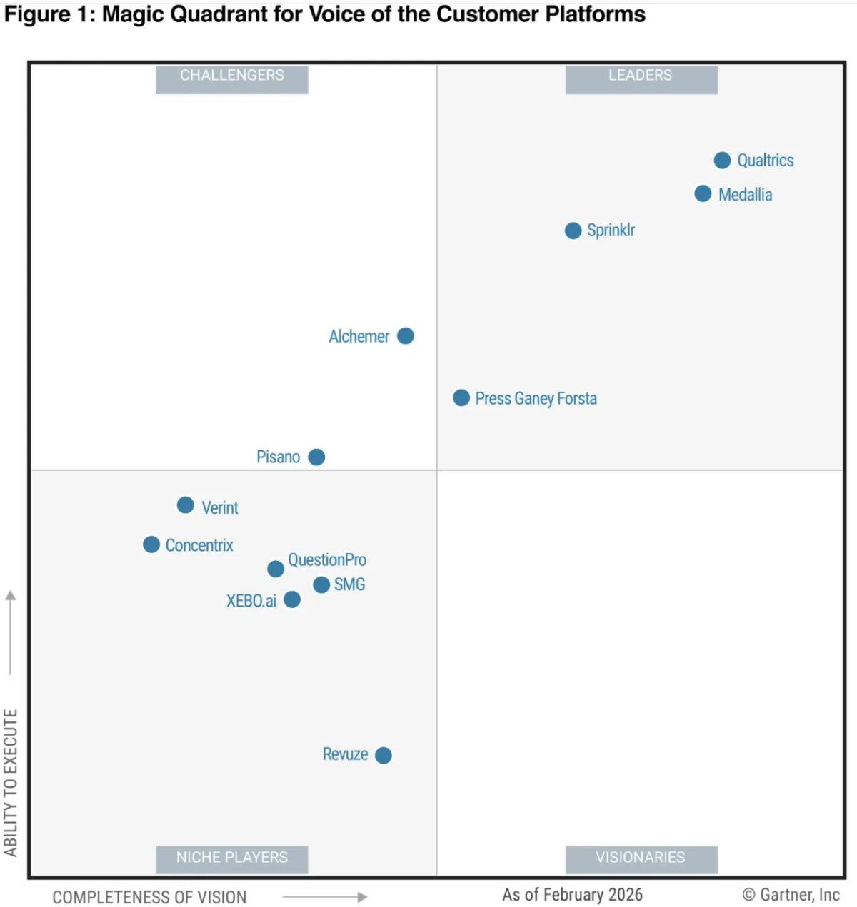 Qualtrics has been named a Leader in the Gartner Magic Quadrant for Voice of the Customer platforms. Gartner placed it highest for Ability to Execute and furthest for Completeness of Vision among 12 vendors evaluated.
